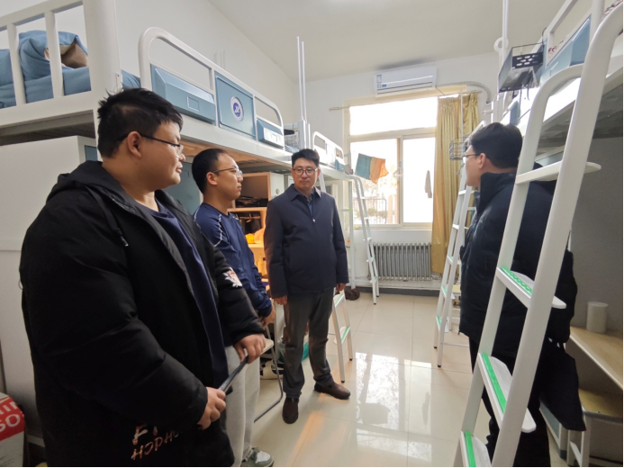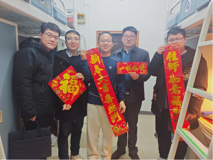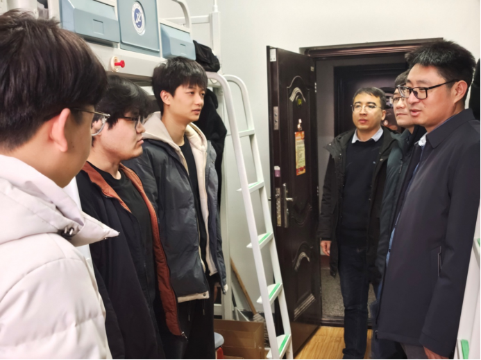 为深入贯彻落实立德树人根本任务,切实筑牢学生假期安全防线,传递学院对学子的殷切关怀,1月15日下午,新能源学院党委书记颜庭星、副书记袁家宝、学办主任张少良及研究生辅导员李苗深入雁塔校区研究生宿舍,开展寒假前走访慰问活动,与同学们面对面交流谈心,送上冬日关怀与新春祝福。
